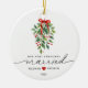 Celebrate your first Christmas together as a married couple with our exquisite Christmas ornament featuring a charming green mistletoe with red ribbon bow design. Perfect for newlyweds, it adds a personal touch to your holiday decor while creating lasting memories for years to come.