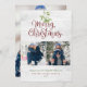Pretty watercolor mistletoe hangs over chic script Merry Christmas typography on these elegant photo holiday cards. Personalize the message, 2 photos, family name, and date on the front and add another photo on the reverse or leave blank. Designed by Thisisnotme©