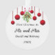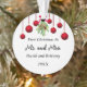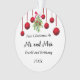 Lovely newlywed Mr. and Mrs. ornament features a row of hanging red Christmas balls with a sprig of mistletoe in the centre. Below the couple can commemorate their first Christmas together.