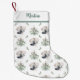 Celebrate the season with this Mistletoe and Silver Bells Christmas Stocking, adorned with a charming watercolor design of mistletoe bouquets and silver bells tied with gold bows. The festive greenery brings a touch of timeless holiday cheer, making it perfect for a classic or preppy Christmas style. Add your name across the top to make it uniquely yours or create a matching set for the whole family. A beautiful keepsake stocking to hang by the fireplace year after year.