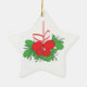 A fun illustration of mistletoe in red and green on white ceramic star shaped ornament designed to decorate your tree with fun for the holidays.