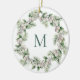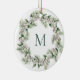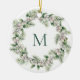 Mistletoe White Berry Monogrammed Wreath Christmas Ceramic Ornament