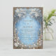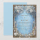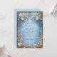Step into a fairytale with this breathtakingly atmospheric woodland composition. The design centers on a misty sky blue clearing, framed by majestic gnarled trees with lush white blossom canopies. At the base, a delicate meadow of pink and white floral buds peeks through golden foliage, all enclosed within a grand ornate gold filigree border. The intricate shimmering scrollwork and hazy blue textures create a sense of ethereal mystery and high-end elegance. This wedding invitation is an exquisite choice for a whimsical spring garden ceremony, a winter wonderland celebration, or a sophisticated fairytale-themed gala. It ensures your event details are presented with a sense of magic and organic grace from the moment the envelope is opened.