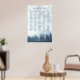 This beautiful wedding seating chart features a rustic watercolor of a wooded mountain side covered with blue pine trees and shrouded in fog or mist. The title reads "please find your table" in elegant lacy script calligraphy. There is space for the up to 250 names with the names of the couple and wedding date below. Perfect for an outdoor or mountain destination reception.