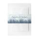 This beautiful belly band is designed to hold all of your wedding enclosures together with the invitation making a truly elegant presentation for your guests. The simple rustic design features the names of the couple printed in fancy script lettering against a mountain landscape of misty blue spruce or pine trees.