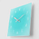 An aqua blue wall clock in soft colours, tropical breeze pastel aquamarine tones with white numbers and misty fading colour or frosted edge look design, simple and elegant. Aqua is a blue-green colour of mental refreshment, imagination, self-awareness, tropical lagoons and clear mountain streams, also a traditional soft blue colour for a boy's room. This whimsical design is sure to please. In square (shown) or round shapes. A great gift for friends and family for special occasion, birthday, Christmas, housewarming, bridal or baby shower, or any time you like. Original design Sylvia Rose. Please visit me on Twitter @Sylvia_FineArt. Have a great day!