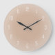 A rosy beige coloured clock with white numbers and misty fading edges or frosted look design, simple and warm with genuine charm. If you want, you can use the customize feature and select a different colour background to harmonize with your personal decor style; or, add text if you like. Beige, rosy brown or light brown tones are gentle, natural and friendly, and can symbolize inner warmth, honesty and strength. They relate to the element Earth, including clay or sand. This clock adds a cheerful rustic art touch to kitchen, living room, bedroom, family room, kids' rooms, studio; at home, workplace or cottage; or makes a great gift for friends and family for birthday, Christmas or anytime you please.