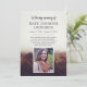 Photo memorial announcement featuring a misty autumn landscape and elegant dark purple text.