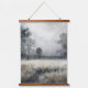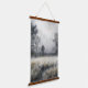 A modern, moody, misty meadow with trees and deep grasses. Framed print from a dry brush watercolor painting. Ethereal, minimalist. Black, white and a touch of brown. Watercolor washes with dry brush details. This is a print of a watercolor. Modern simple black frame. Choose your frame style and colour.