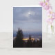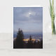 The moon lights up misty clouds with translucent white light in a stormy looking purplish sky above Longview, Washington. Surrounded by mountain ranges which disappearing into distant haze, the city lights blaze like dots of fire along the banks of the Columbia River. Seen through the forest on the hills of Rainier, Oregon the river flows thought the Columbia River Gorge towards the sea as the dusk begins to deepen into night...