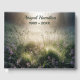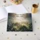 Soft sunlight filters through a misty forest illuminating a meadow of delicate purple flowers and lush green grasses for a funeral or a memorial service.