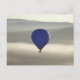 Hot air balloon floating over the mist covered Dordogne landscape at sunrise