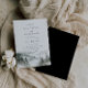 Elegant Watercolor Misty Mountain Pine Tree Forest Scene, wedding invitation. Invitation features chic typography design style mix of calligraphy and bold type. Coordinating solid black colour backing.
