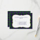 Colourful traditional tartan plaid wedding response RSVP card featuring the clan Mitchell pattern, in the background. A decorative gold tone edged white text area has custom text ready to personalize.
