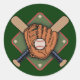 Baseball glove drawing, with ball, crossed bats & baseball diamond background. Colour, t-shirts, sweats, cards, gifts.
