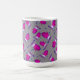 This festive mug features pink watercolor mittens on a background of dots on grey.