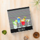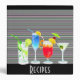 Perfect binder to keep all those mixed drink recipes. Next time you have a party, let everyone pick the drink they want. Black background with a striped background on front of grey, cool green and purple. Illustration of four different cocktails also on front. Spine and front have customizable text.