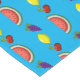 Mixed fruit makes up this colourful table runner. Customizable so you can add your own text and change the background colour. This design is sure to bring some smiles!