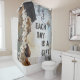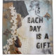 Each Day Is A Gift mixed media artwork shown on shower curtain. The original art is a mixed media canvas and is one of my favourites. The artwork was made by using a combination of any and all of the following: stamps, acrylic paints, inks, fabric, paper, findings and more. This image is available on a variety of products. Design by Jenn Steffen of Jenn's Emporium.