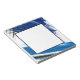 Mixed media watercolor blue abstract artistic notepad featuring an abstract painting I created, using a cold colour palette made of various shades of blue as well as black and white.