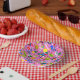 Mixed pickleball doodle on pink. Perfect as a gift for pickleball player. Paper Bowls with pink pickleball motif