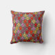This throw pillow has an art deco design of tulips from pentagons and trapezoids in orange, red, purple, gold, and green.