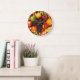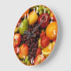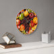 A delicious looking photo of mixed whole fruits sets the tone for this yummy clock - which would look perfect in any restaurant, home kitchen, or cafeteria. The clock is finished off with white numbers, red minute markers and a burnt orange border.