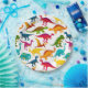 Mixture of Colourful Dinosaurs in Black Canvas Paper Plate