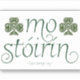Un autocollant de style souvenir avec l'expression irlandaise "mo stóirín", qui se traduit plus ou moins par "mon petit amour". L'autocollant se veut un autocollant de la ville de Hope Springs, WY, un lieu fictif de la série "Hope Springs" de Sarah M. Eden.