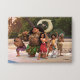 This vibrant and cheerful image from the world of Moana showcases a gathering of beloved characters, each bringing their own unique flavour to the adventure. Maui, with his mischievous grin and legendary fishhook, stands proudly beside Moana, who crosses her arms with a confident, playful smirk. Joining them is Moni, motioning towards Maui; Lota, full of excitement; Kele, arms crossed; Kotu the Kakamora; the energetic and slightly zany Heihei the rooster; and the always adorable Pua the pig. The image captures the essence of teamwork that are central to their story. Each character is depicted in great detail, from their expressive faces to their culturally rich attire, representing the spirit of unity and adventure that defines their journey.