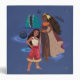 This enchanting illustration from Moana's world features Moana herself alongside a new character, Matangi. Dressed in rich earth tones and adorned with traditional motifs, Matangi stands tall and majestic with her bats flying in the air behind her. Moana's curious and adventurous spirit is captured perfectly as she stands ready to embark on a new journey.