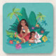 In this delightful scene from the animated world of Moana, we see Moana sitting on the lush, tropical shores of her island alongside her adorable younger sister. The two share a serene moment surrounded by vibrant flora, the loyal pig Pua, and the quirky, colourful rooster Heihei. This heartwarming image encapsulates the themes of family and friendship, set against the backdrop of their rich island culture and the deep, inviting jungle that defines their home.