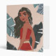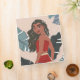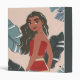 A beautiful illustrated moment with Moana looking back through the tropical leaves.