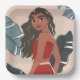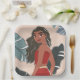 A beautiful illustrated moment with Moana looking back through the tropical leaves.