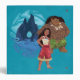 This vibrant image from the animated world of Moana features the courageous Moana and the mighty demigod Maui, standing together against a backdrop of a giant rock formation in the sea. Maui, with his intricate tattoos and traditional garb, is ready to adventure again with his friend Moana. Moana, confident and poised, is depicted in her iconic red and cream outfit, embodying the spirit of adventure and leadership. Together, they prepare to embark on a new journey, underscored by the swirling blues of the ocean behind them, symbolizing their unbreakable bond with each other and the sea.