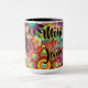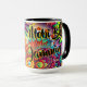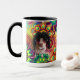 A vibrant and colourful coffee cup with a little dog (Rat Terrier) that is sporting his wonderful locs. You will be noticed, jamin with your cup of jo, java, tea, cocoa, or hot chocolate. Everything on this mug can be changed but you will not be jammin, Have fun with this little cup of joy.