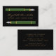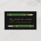 This elegant modern notary business card features a pair of green vintage fountain pen illustrations. Personalize it with your name in gold-coloured handwriting-style script on a black background, and add additional contact and commission information on the reverse.