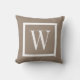 Mocha Brown and White Preppy Square Monogram Throw Pillow