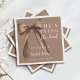 She’s Tying the Knot Personalized Bridal Shower Napkins | Elegant Mocha Brown Bow Custom Cocktail Napkins | Modern Classic Neutral Bridal Shower Decor