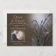 Rustic Nature Photo Engagement - Your photo with this soft mocha brown theme, a soft glow behind a pretty display of cattails and grasses with sparkly dragonflies glistening in the glow - the back is a coordinating colour easy to customize template - original artwork by WhimsicalArtwork™ for theBarefootBride ™. This is part of a complete wedding stationery suite, as well as Baby Shower, Birthday and Christening Invitations. For question or assistance please contact designer indy.designer@yahoo.com.