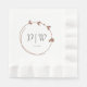 Elegant paper napkins for your wedding event that features a trendy mocha brown colour, simple heart wreath with the bride and groom's initials and wedding date in stylized, grey lettering. Edit and replace initials and date with your own. Select your paper napkin colour.