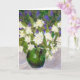 A birthday card with an original oil pastel painting of a green jug filled with fragrant Mock Orange Blossom and blue Ceanothus.