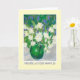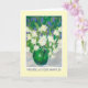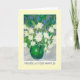A pretty birthday card with 'Happy Birthday' in Welsh, and a vase of creamy white Mock Orange Blossom and sky blue Ceanothus; from an original oil pastel painting by Judy Adamson.