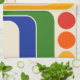Retro Mid Century Modern Geometric Design in Yellow Orange Red Blue and Green.