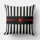 Mod Black & White Stripes with Bright Red Heart Throw Pillow