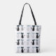 Tote bag with mod cats in shades of black and grey. Add a background colour to make it uniquely yours.