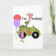 Mod Frogs 1st Birthday design featuring lots of polka dots, ballons, a cool green car, and green frogs!