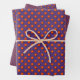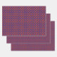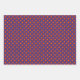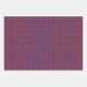 Mod gift wrap paper in 3 different scales. Orange shapes on a purple background.
