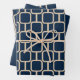 Mod Links Geometric Pattern Mid Century Dark Blue Wrapping Paper Sheet