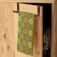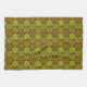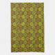 Floral pattern kitchen towel with a mod design of marigold flowers.